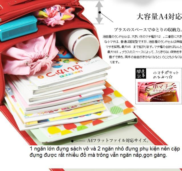 Những chiếc randoseru này có chất liệu bền đẹp và vô cùng tiện dụng. Những học sinh có thể đeo dễ dàng cũng như đựng được nhiều vật dụng trong đó một cách nhẹ nhàng mà không lo sách vở bị ướt hay quăn mép.